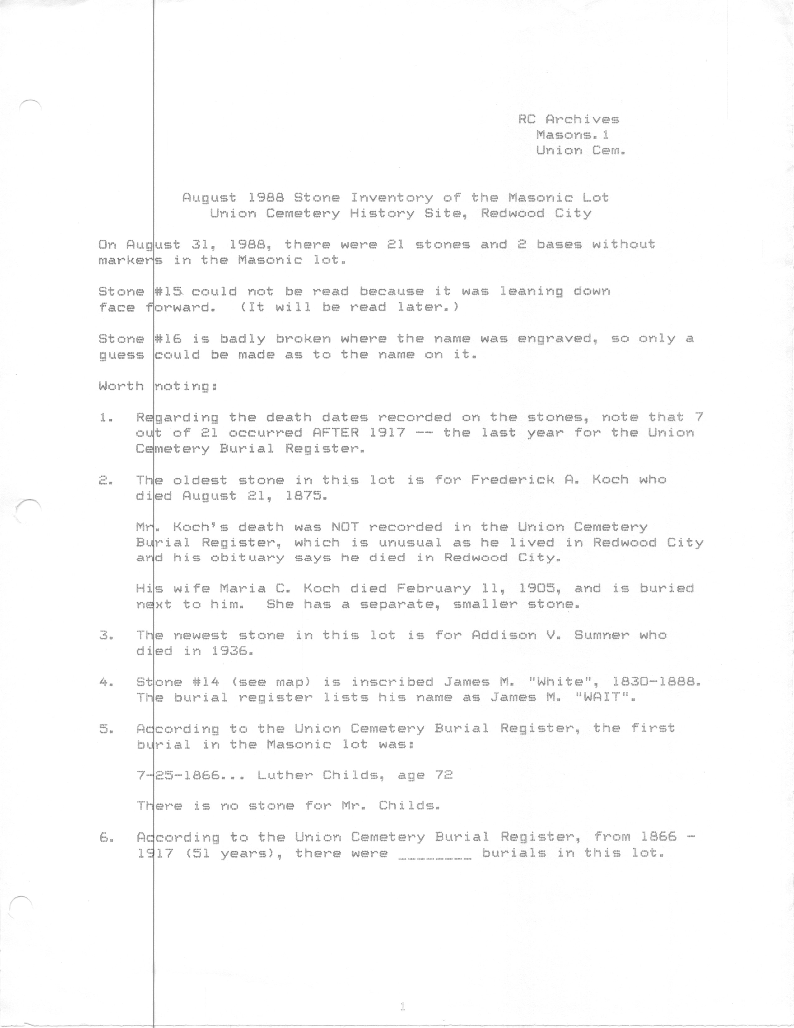 - "Union Cemetery Information"