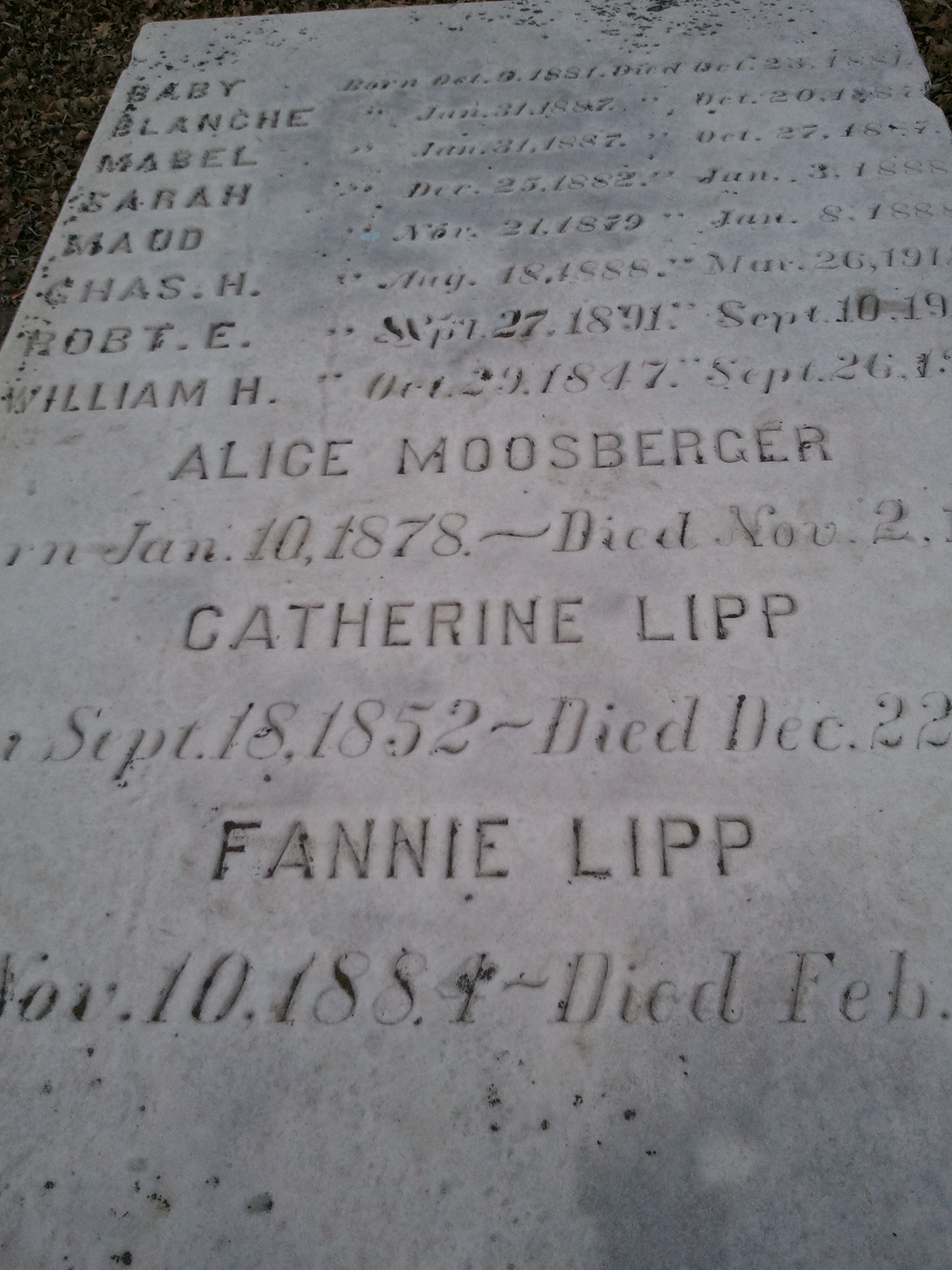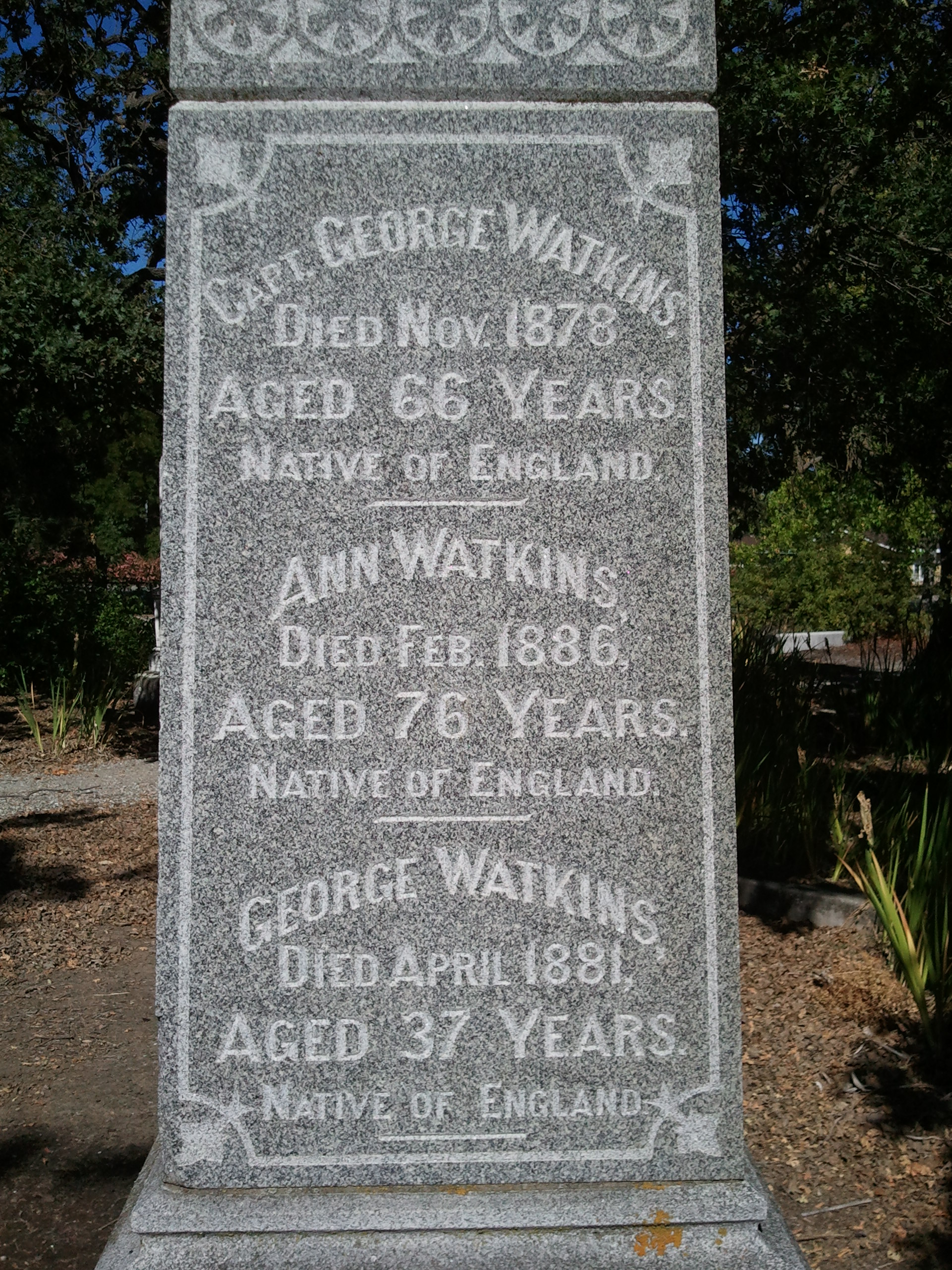 James Sydney (infant) Whitehead, Margaret Isabella Whitehead, James (d.1885) Whitehead |